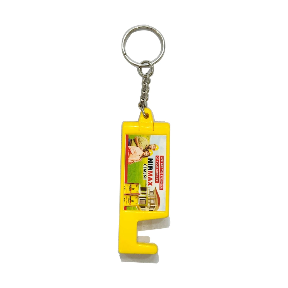 - Built-in Mobile Stand: This innovative keychain includes a mobile stand feature, making it a practical tool for holding smartphones and enhancing its utility as a promotional item.