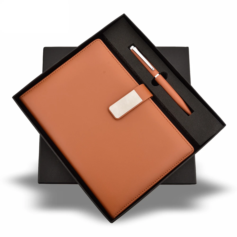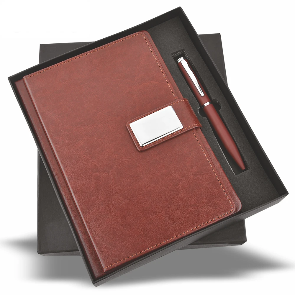 - Custom Logo Branding — Logo engraving on clasp plate or printing on notebook cover and pen body