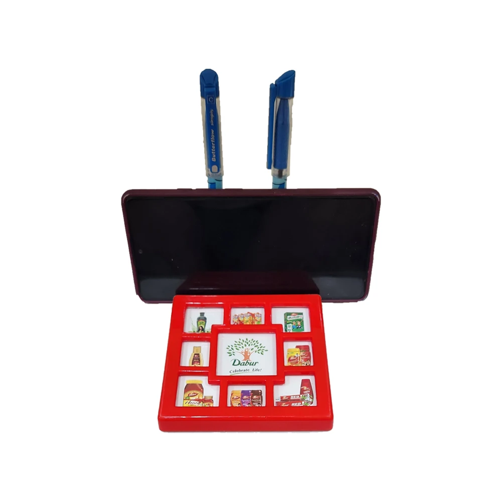 Enhance your workspace with the Promotional Plastic Paperweight with Mobile Stand & Pen Holder. This versatile desk accessory combines practicality with vibrant design, making it an ideal choice for promotional purposes.
