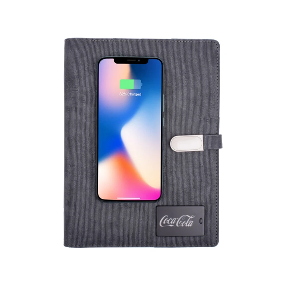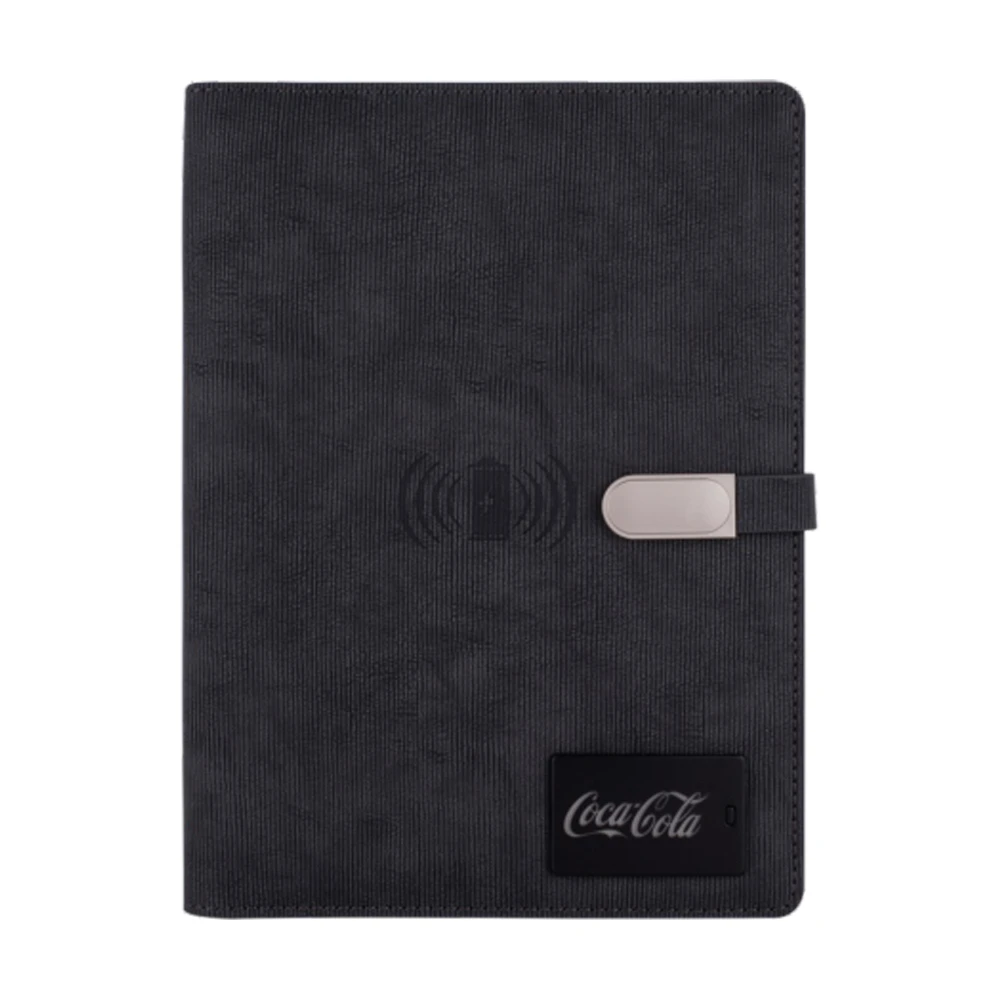 Your Logo, Lit Up — On a Notebook That Also Charges Their Phone.