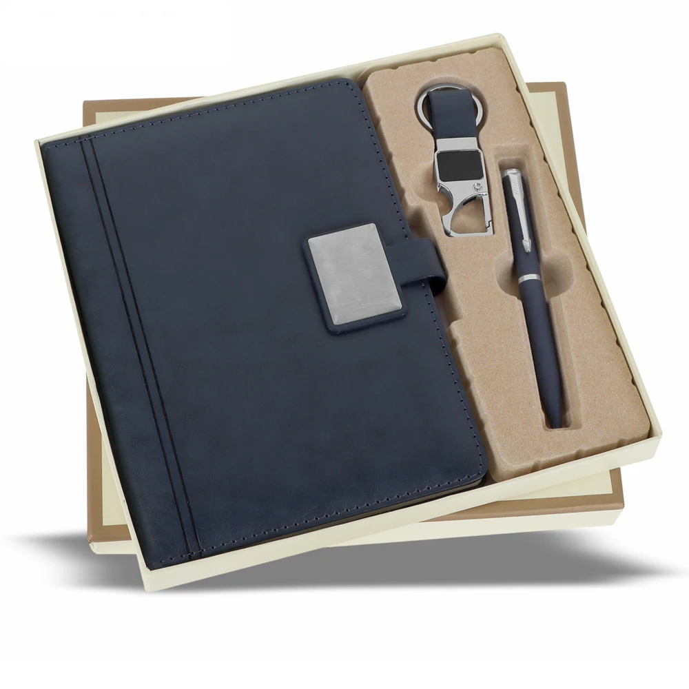 - Custom Logo Branding — Logo engraving or printing on notebook, pen and keychain across all variants