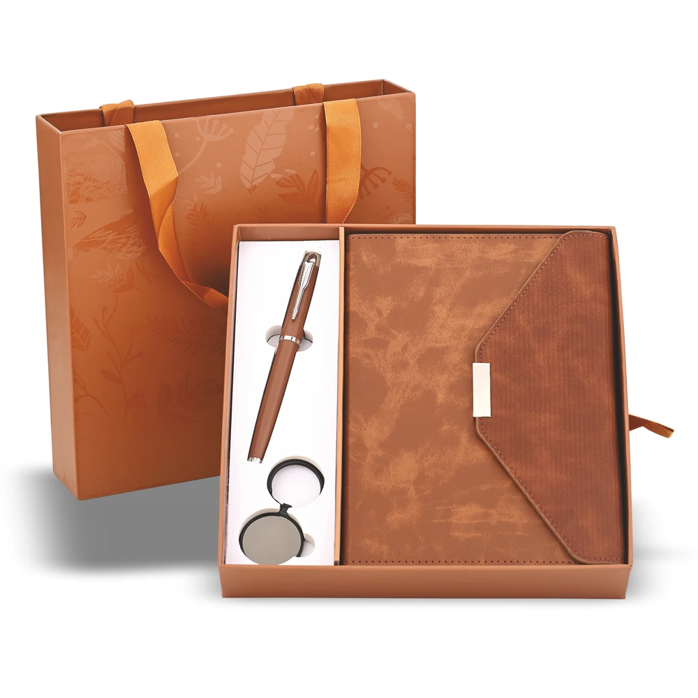 This isn't just a gift set — it's an experience. The Luxury Envelope Notebook & Pen Gift Set from Kee Creation features a premium distressed-texture envelope-flap hardcover notebook, a coordinated metal pen, and a circular metal keychain — all presented in a fully colour-matched gift box, tucked inside a sophisticated botanical-print ribbon carry bag. From the moment it's handed over, this set communicates extraordinary attention to detail.