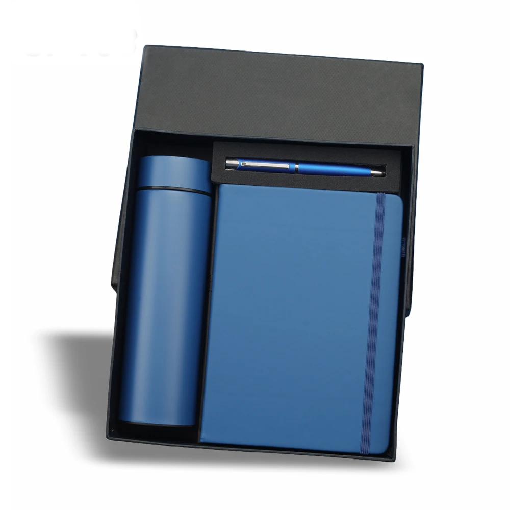 - Custom Logo Branding — Logo printing or engraving on bottle, notebook cover and pen across all variants