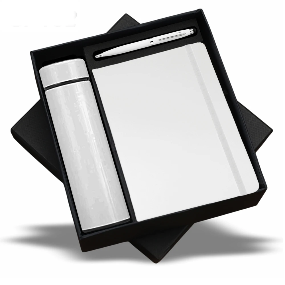 - 3 Bold Colour Variants — Vibrant Red, Royal Blue & Crisp White; every piece fully colour-coordinated across notebook, bottle and pen
