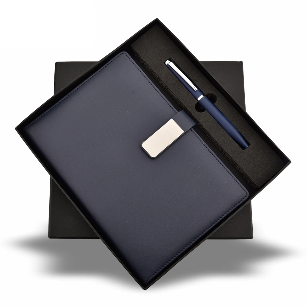 - Custom Logo Branding — Logo engraving on clasp plate or printing on notebook cover and pen body
