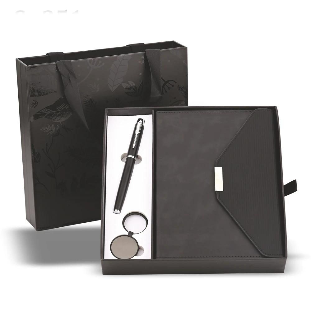 - Custom Logo Branding — Logo engraving or printing on notebook, pen and keychain across all variants