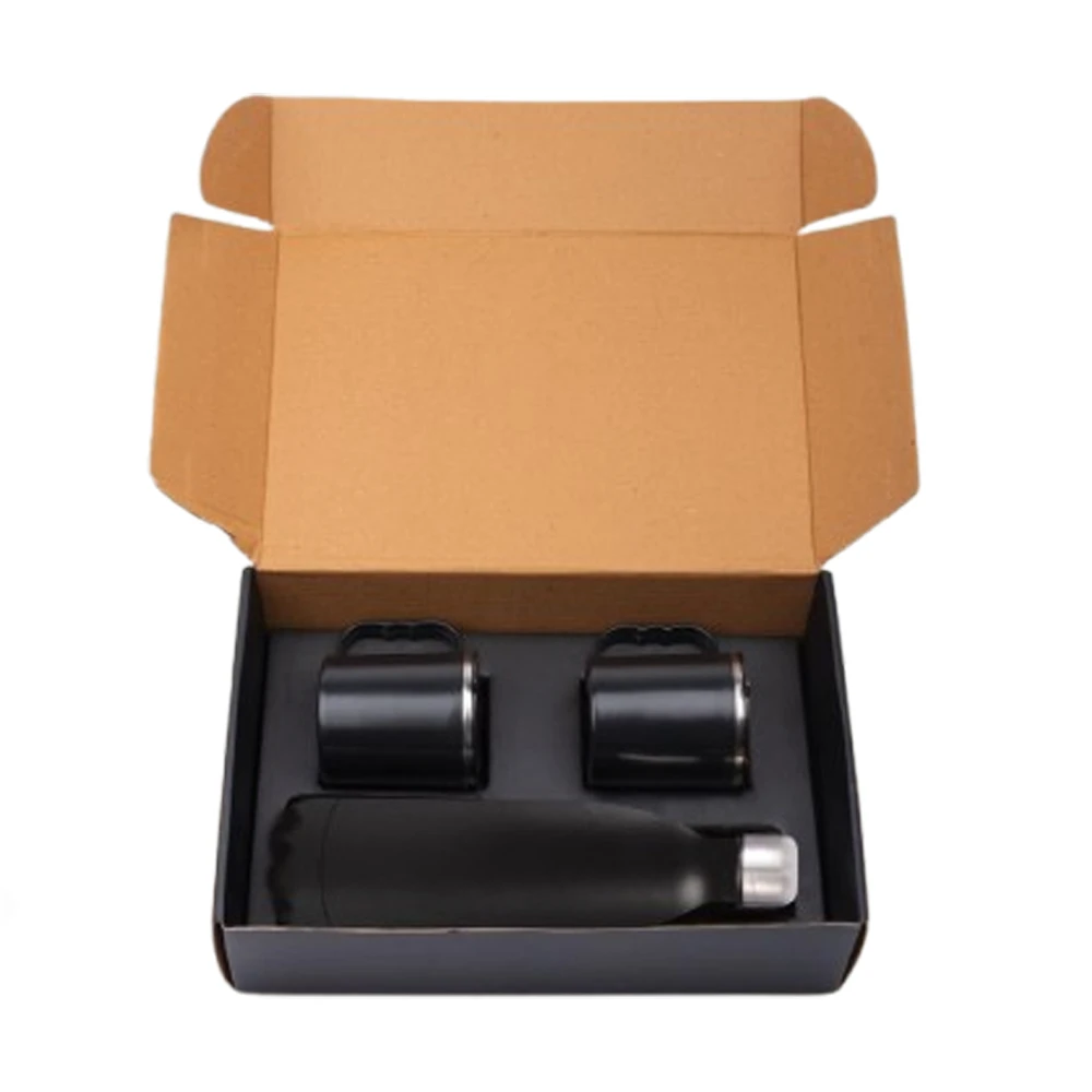 Some gifts get forgotten. This one gets used twice before lunch. The Steel Bottle & Mugs Gift Set from Kee Creation brings together a premium matte black stainless steel bottle with two matching steel mugs — all secured in a custom black foam insert within a sturdy kraft gift box. Available in three distinct variants, each with its own character, all sharing the same standard of quality and finish.